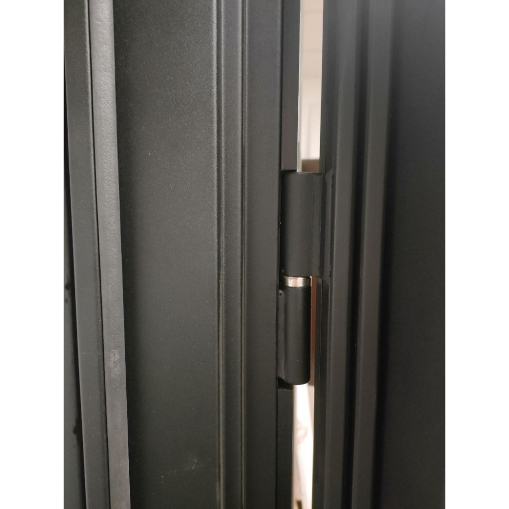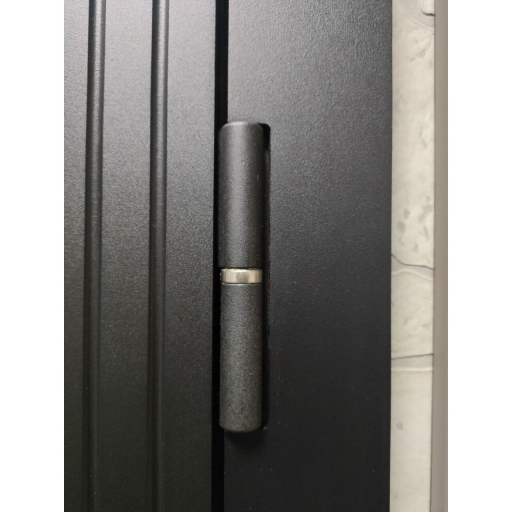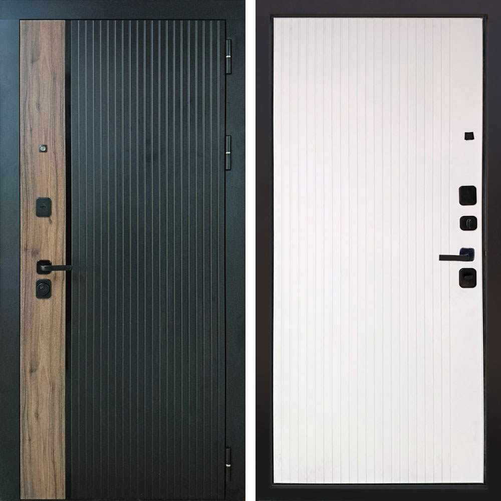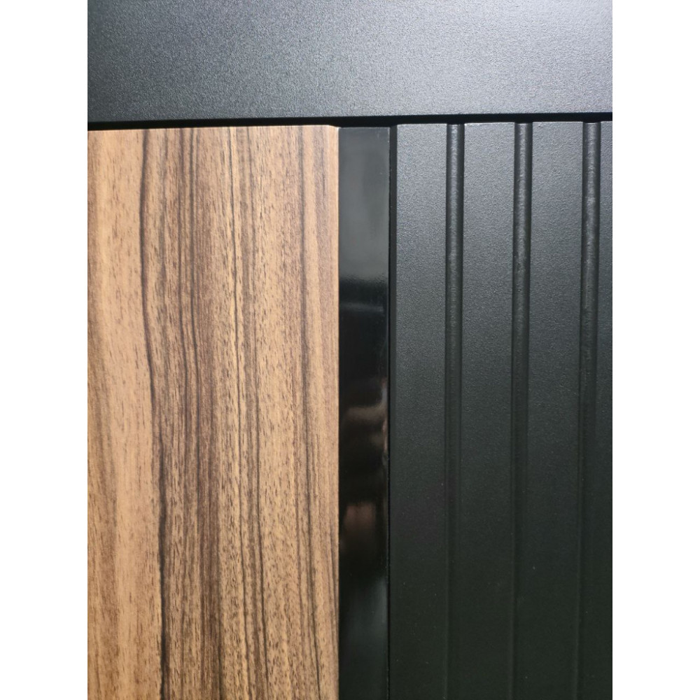 Гладкая ламинированная панель МДФ 10 мм, молдинг черный + наличник МДФ фрезерованный. цвет Замковая часть- "шагрень черная", петлевая часть "орех каньен"