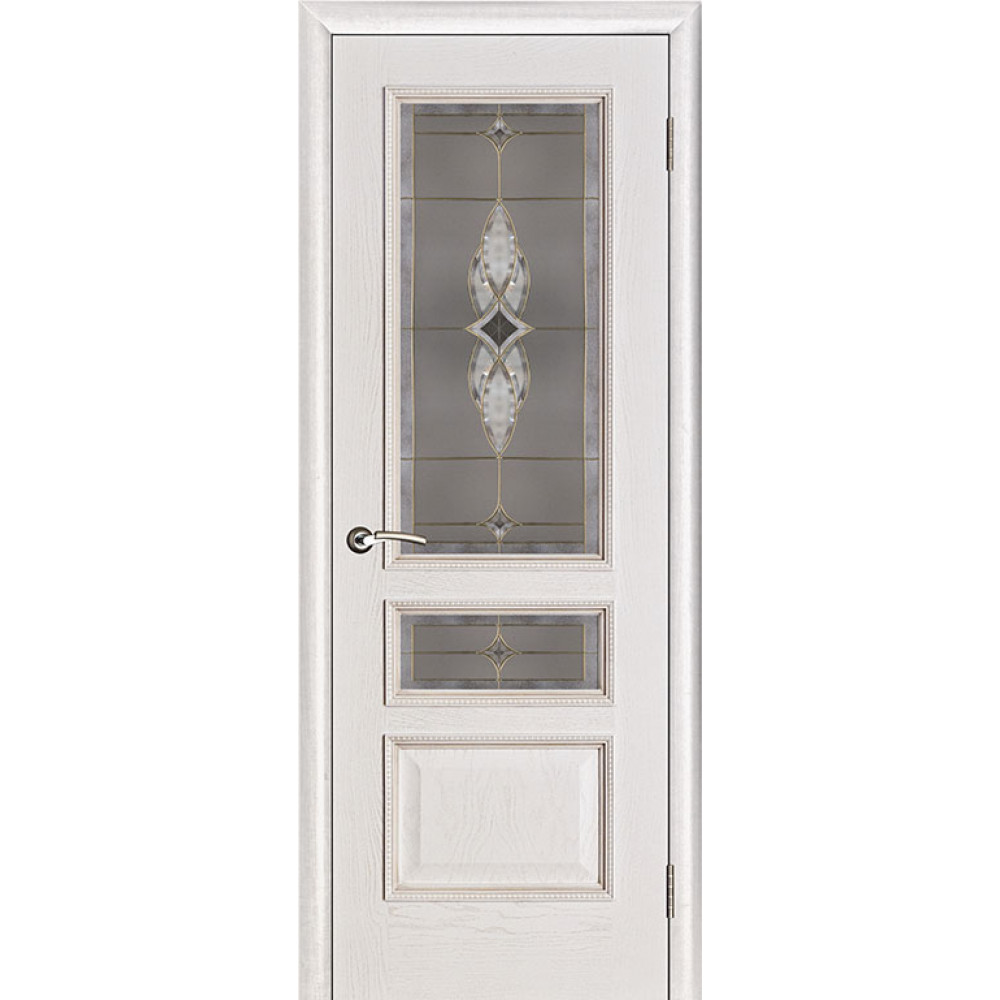 Дверь межкомнатная Вена витраж белая патина остекленная