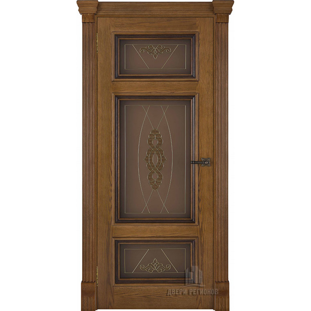 Дверь межкомнатная Мадрид витраж Мираж (широкий фигурный багет) дуб patina antico остекленная