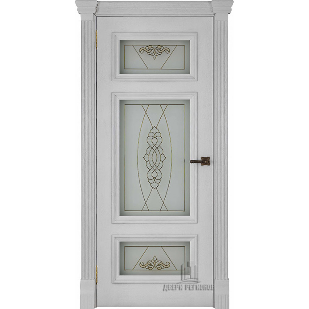 Дверь межкомнатная Мадрид витраж Мираж (широкий фигурный багет) дуб perla остекленная
